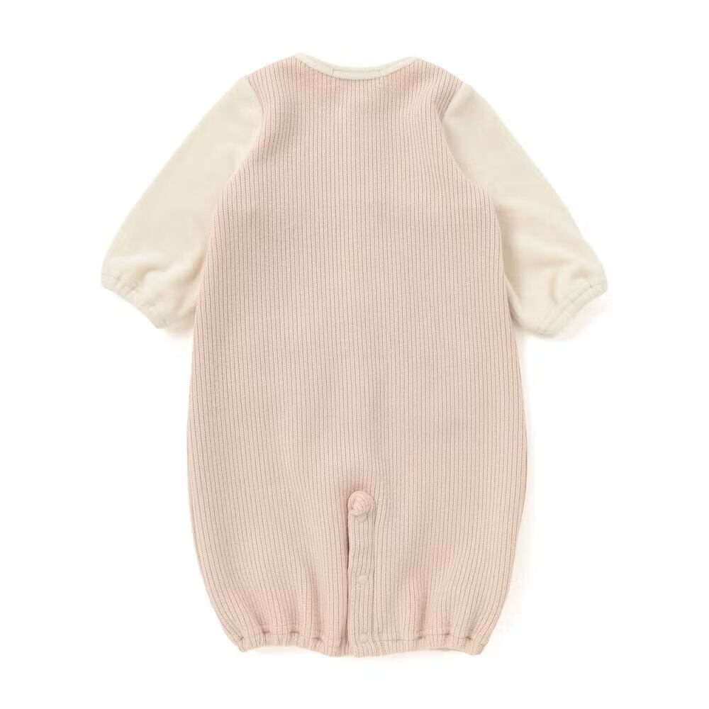 お子様の成長に合わせてスナップボタンでドレス型、パンツ型の2通りで着用可能!
