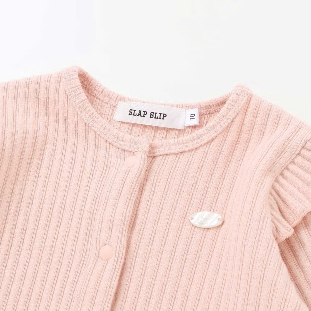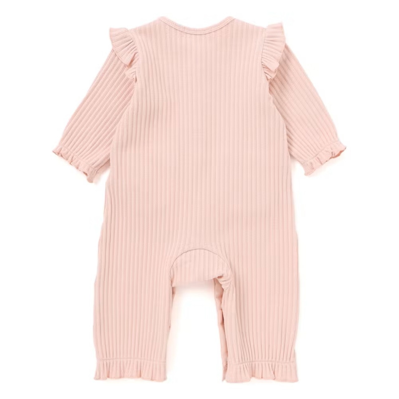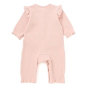 伸縮性がよく肌触りのいい素材を使用している長袖ロンパース。