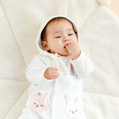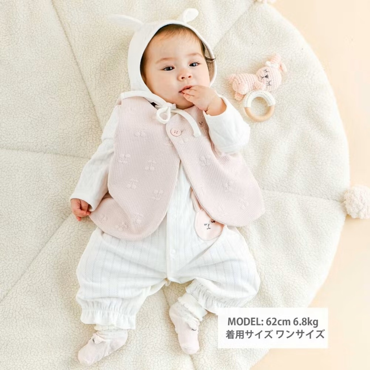 袖口をクルンと折り返すとミトン替わりになる仕様、お顔のひっかき防止や手元の冷え対策にもなる優しいデザイン♪