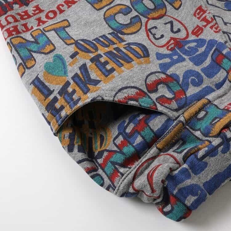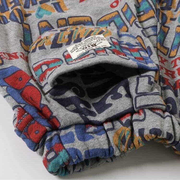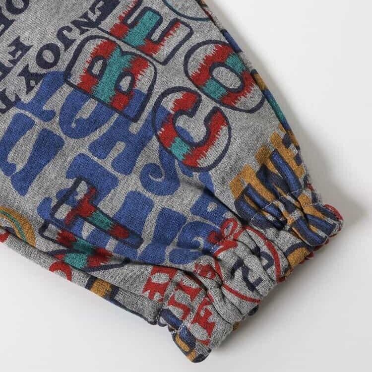 ミニ裏毛素材を使用した総柄カットソーパンツ。