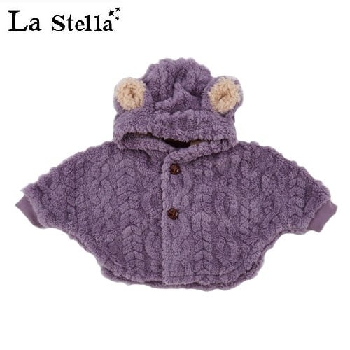 ケーブル模様でネコの耳つきベビーマント♪