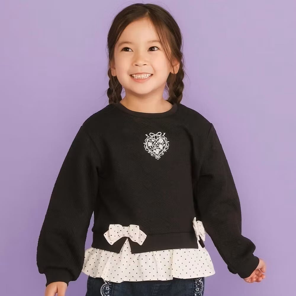 ポコポコのハート柄と切り替えがかわいいトレーナー。