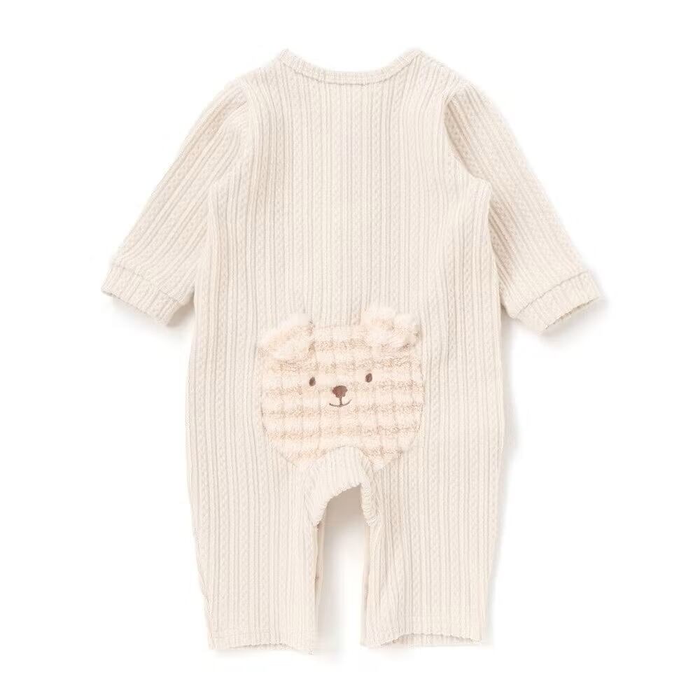 後ろ姿がとびきりキュートな長袖ロンパース。