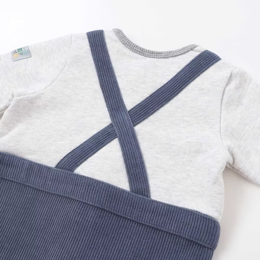 上身頃にはやわらかな裏毛素材を使用し動きやすさと快適さ、サロペット部分には温かみのあるニットコールをプラス!