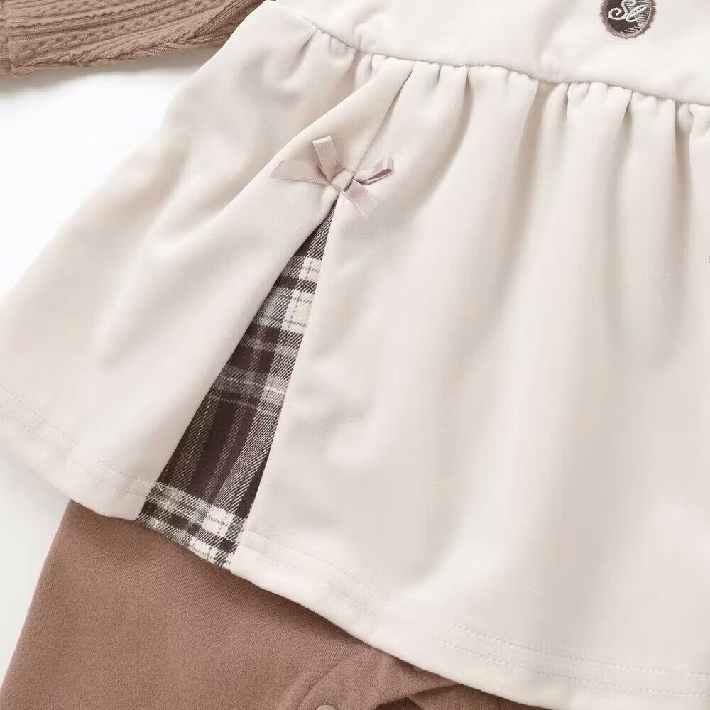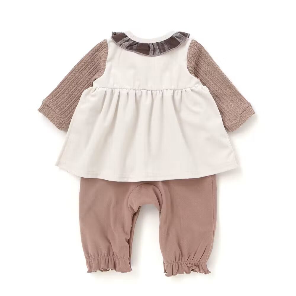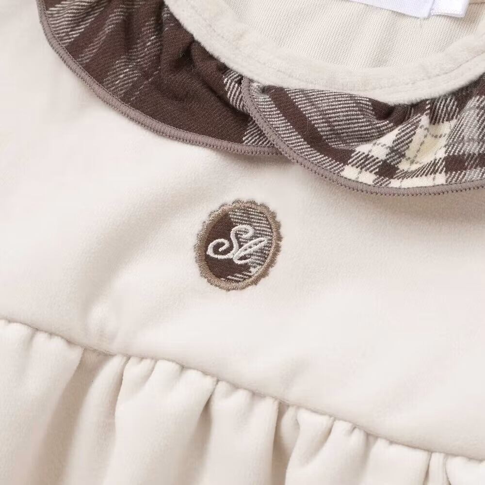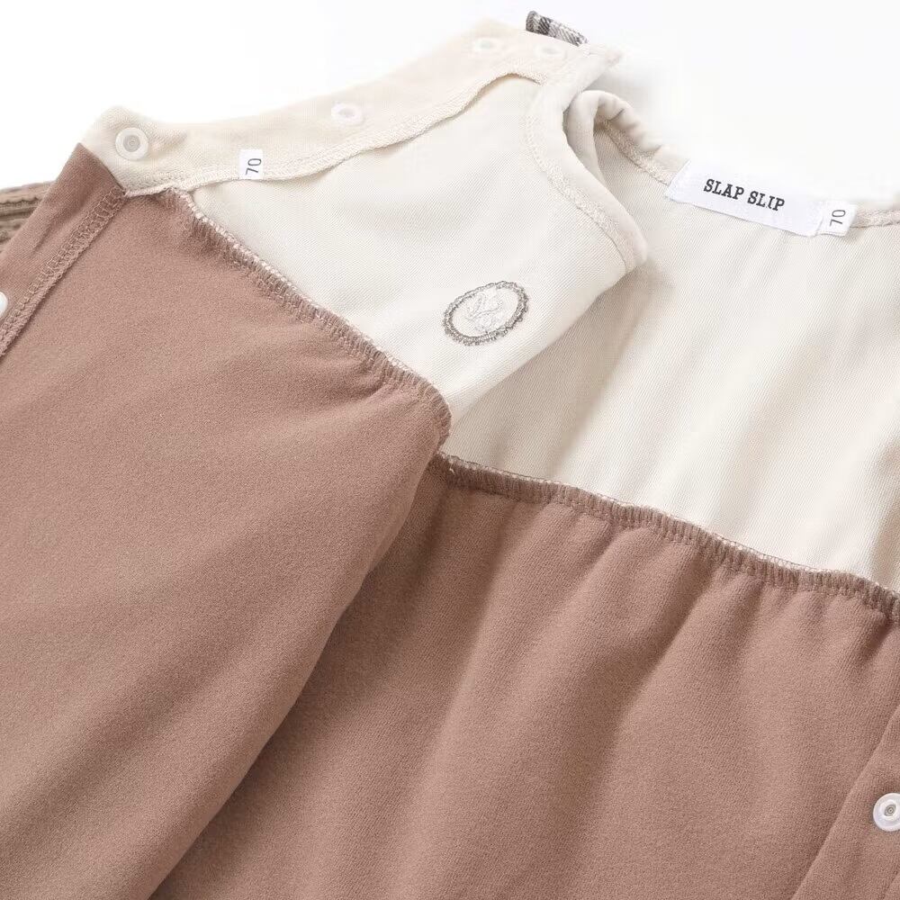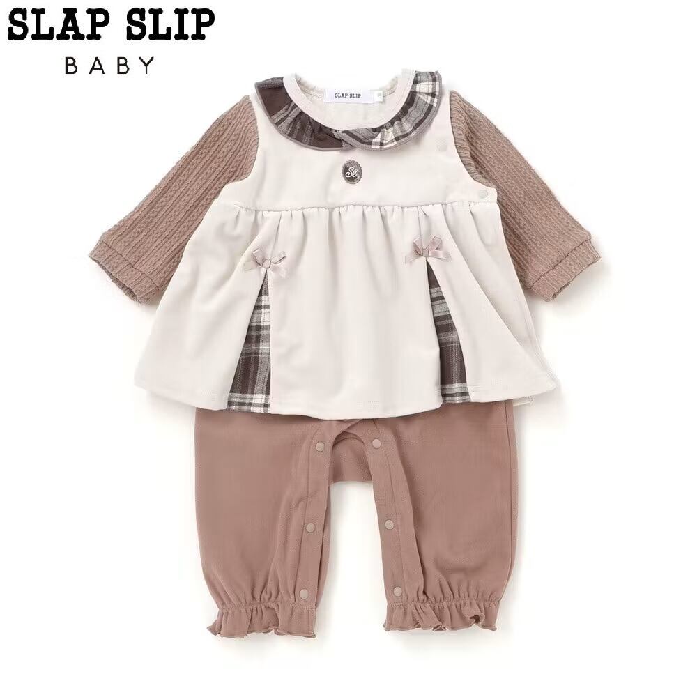 【SLAP SLIP BABY/スラップスリップベビー】チェック切り替えベロアスカート襟付きロンパースBE/70cm