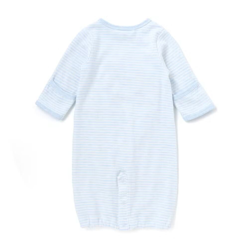 お子様の成長に合わせてスナップボタンでドレス型、パンツ型の2通りで着用可能!