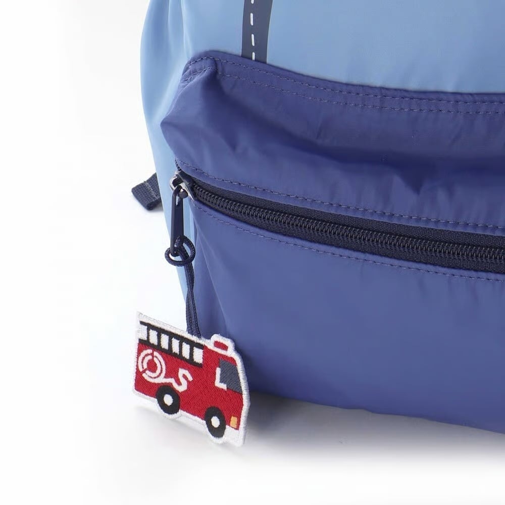 本体とメインポケットのファスナーにはロケットと消防車のモチーフ付き!