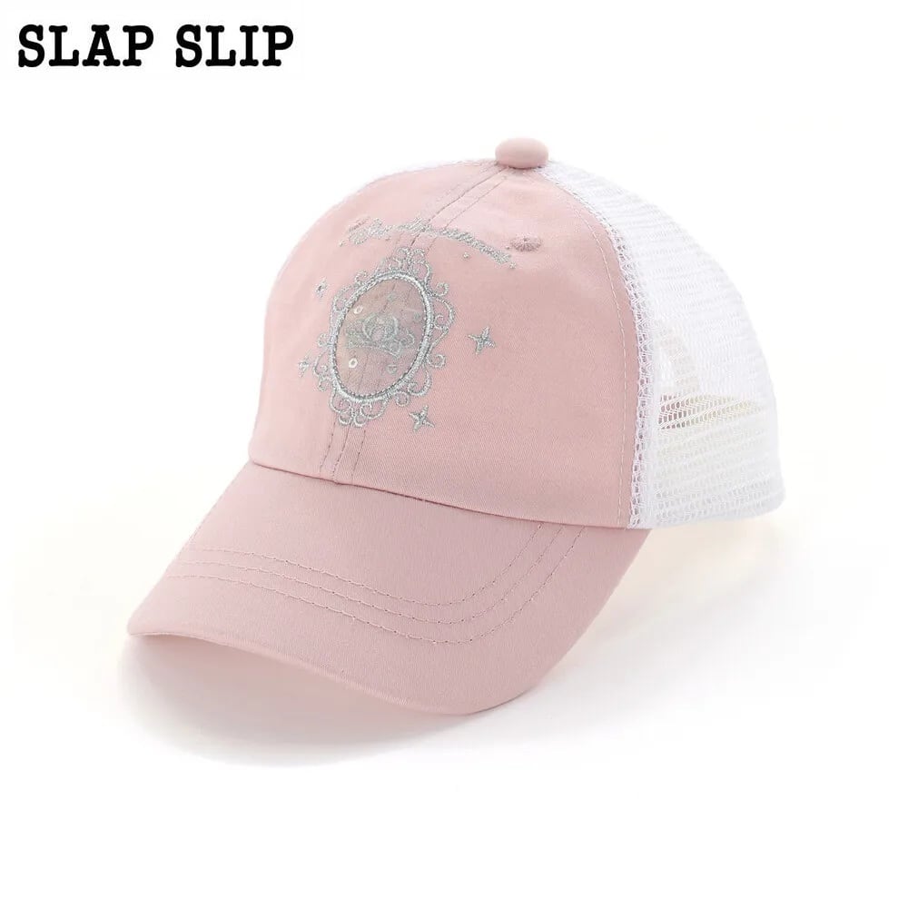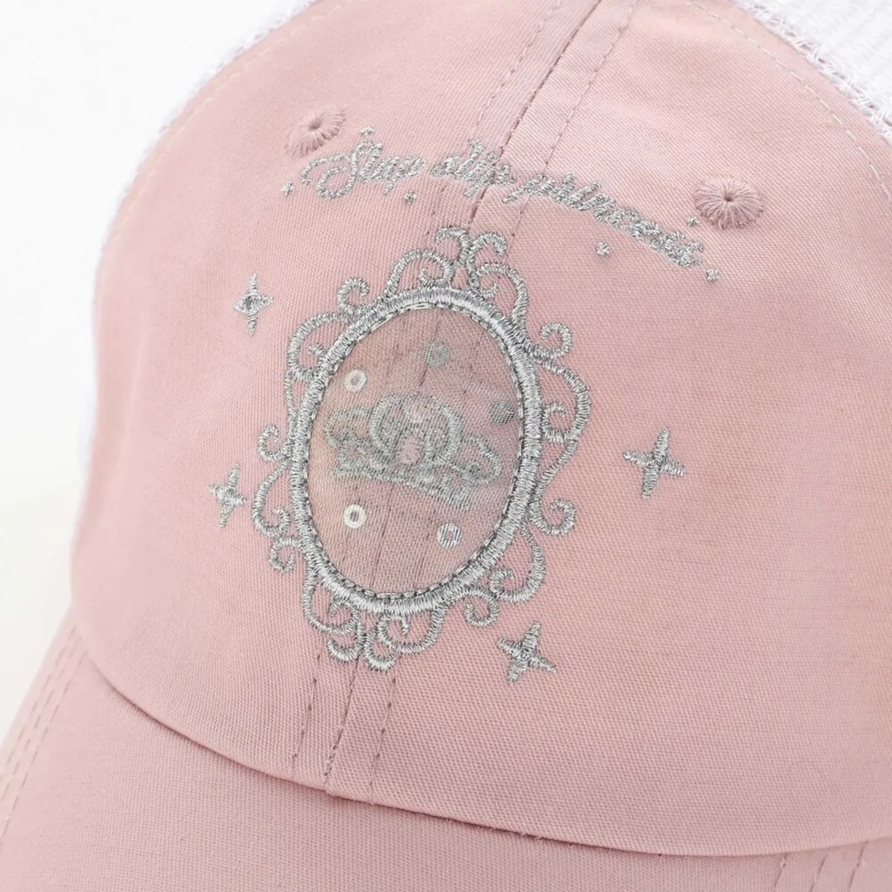 キラキラと輝く王冠モチーフが目を引くキャップ。