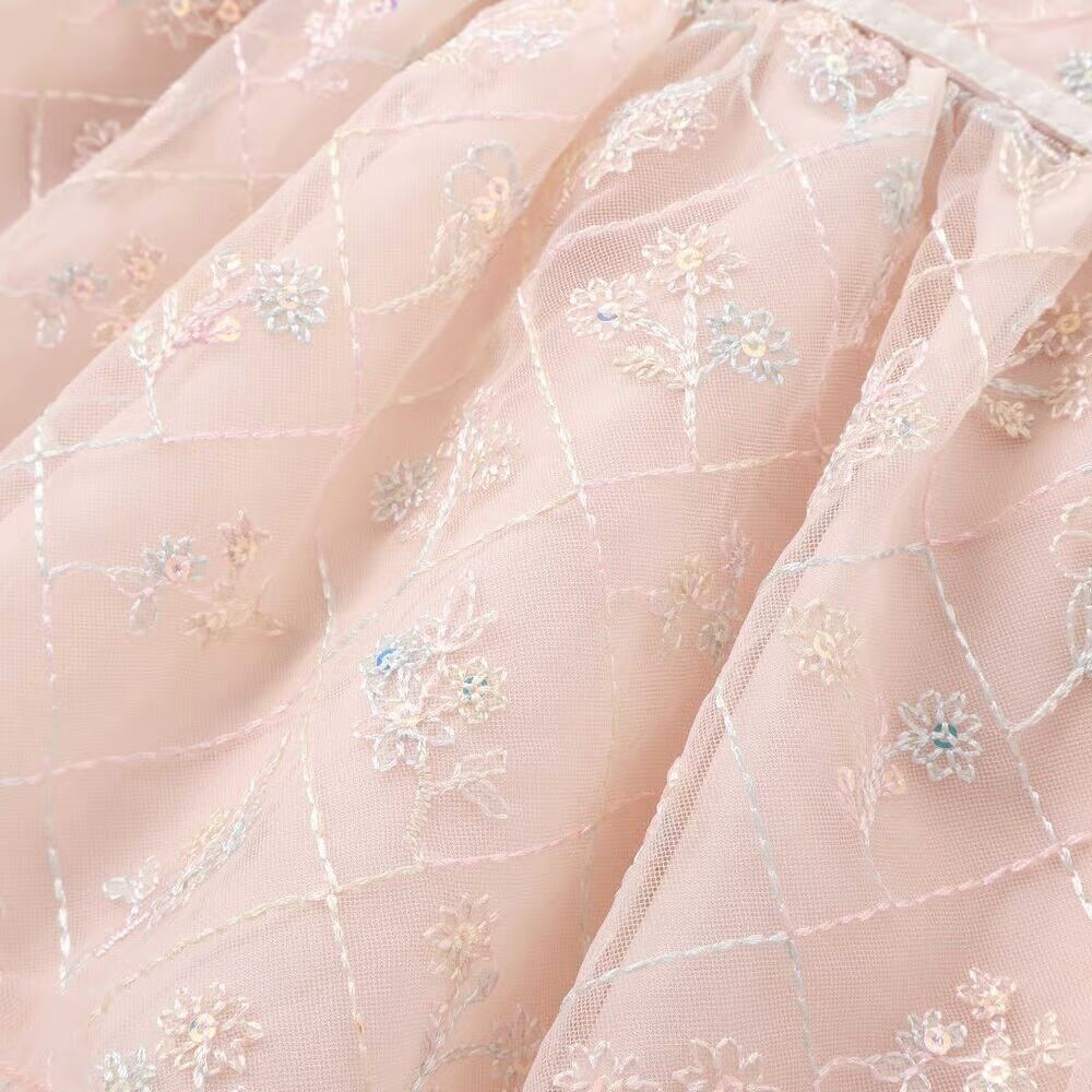 キラッと輝くスパンコール入りのチュール、切り替え部分のリボンが可愛さをさらに引き立てる♪
