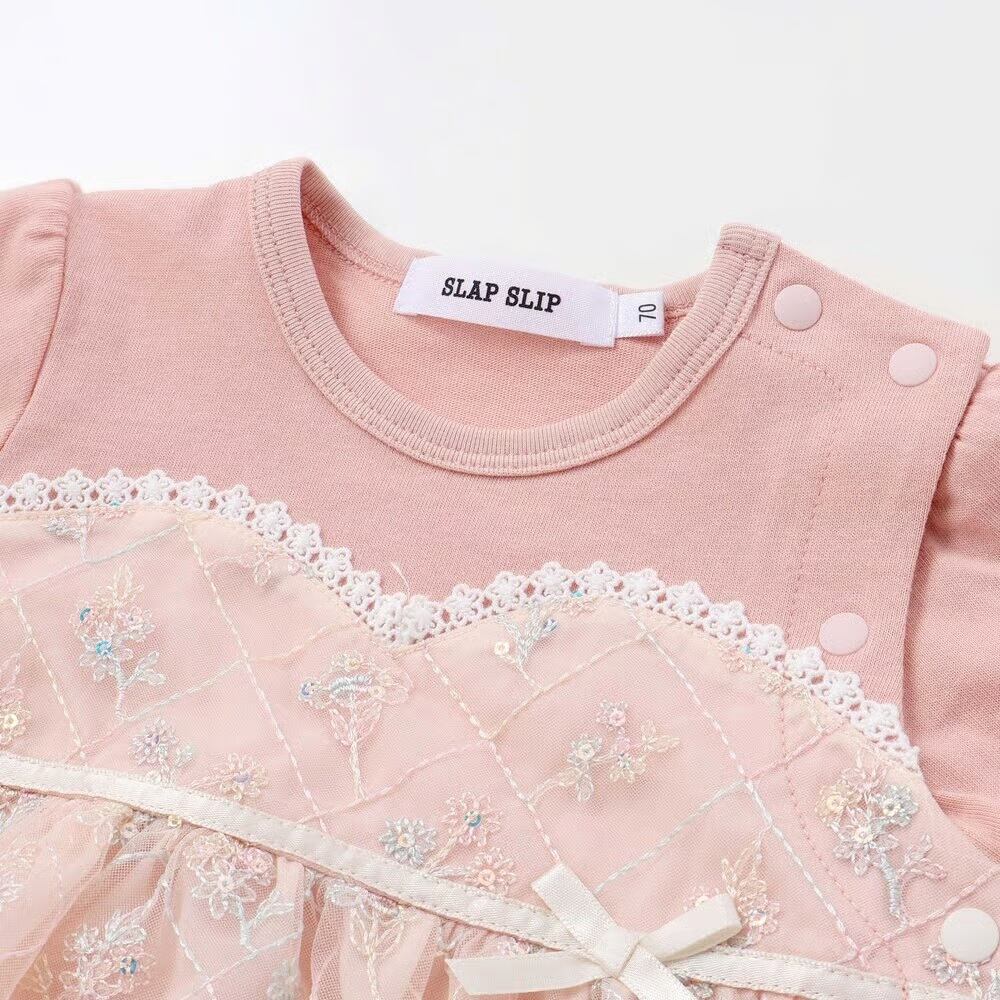 【SLAP SLIP BABY/スラップスリップベビー】ビスチェ風ドッキング花チュールカバーオール/70cm