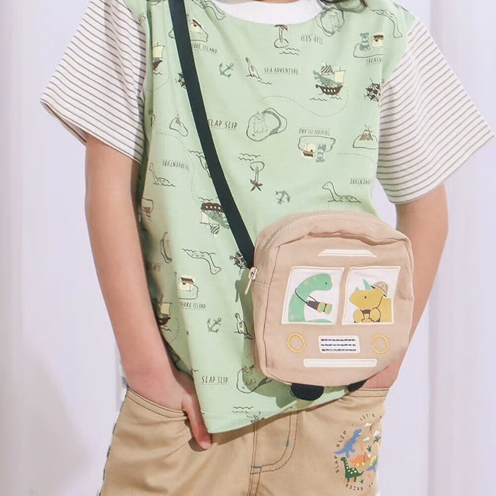 バスをモチーフにしたポシェット部分は、ファスナー付きで実際に小物を入れられる仕様♪