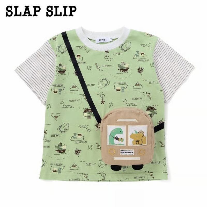 【SLAP SLIP/スラップスリップ】恐竜総柄ポシェット付き天竺Tシャツ
