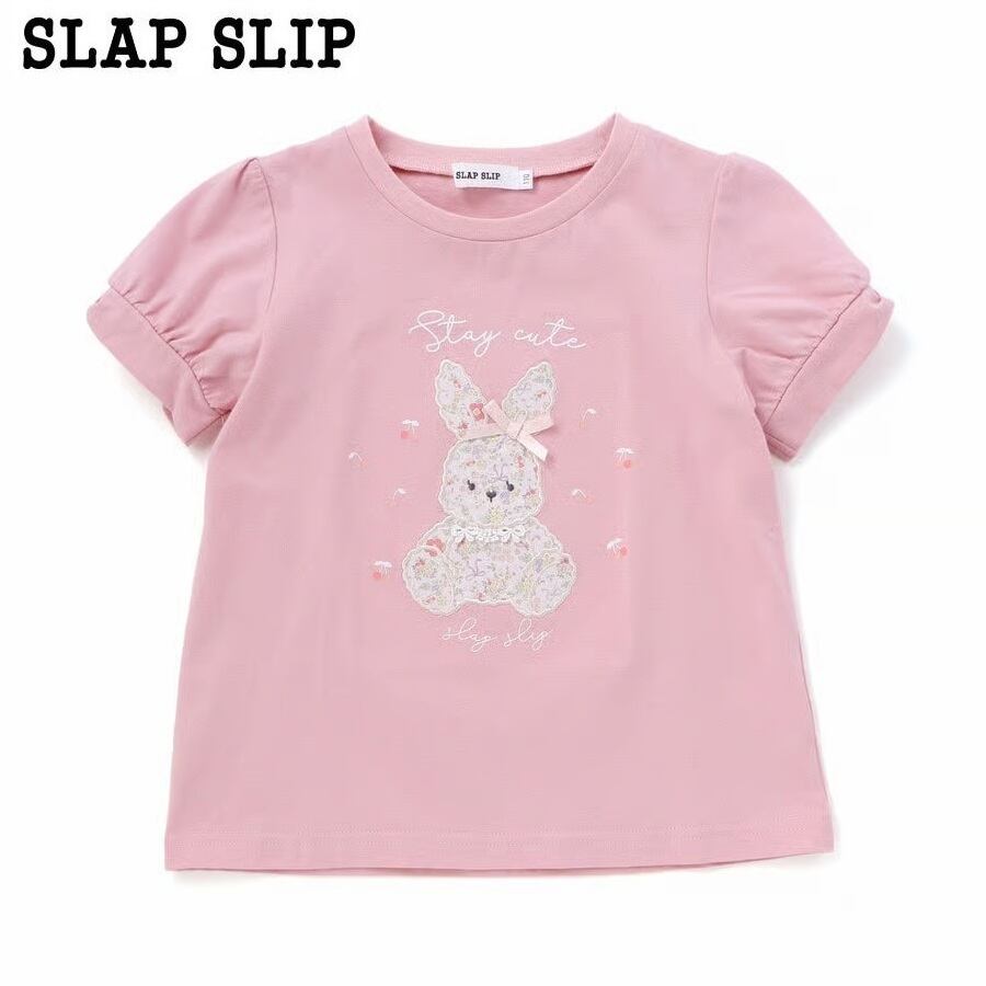 【SLAP SLIP/スラップスリップ】うさぎパッチ刺しゅうリボンスリーブ半袖Tシャツ